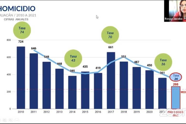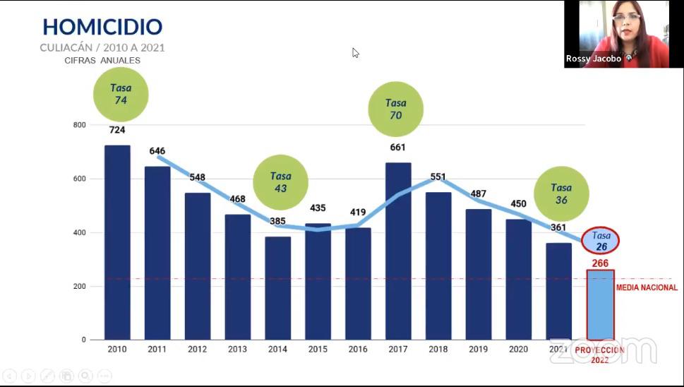 El municipio de Culiacán tuvo una reducción de 22.1 por ciento en el delito de homicidio en los últimos 12 meses y la proyección que estima el organismo civil Construyendo Espacios para la Paz es que cierre el 2022 con la cifra más baja de la última década.