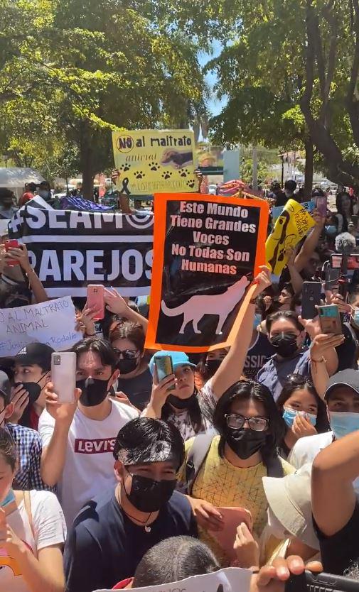 “Tenemos que cambiar ya la leyes de México, tener penas más severas para los maltratadores de animales, darles dientes a la autoridad para que puedan ejercer hechos, aquí está la denuncia que ya no puede ser más pública, Quirino Ordaz, no puede poner un twitter en donde digas, no compete de mí, cuando debería estar usted aquí marchando con nosotros”, expresó.