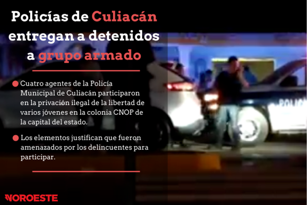 CUALIACÁN._ Policías Municipales entregaron a un grupo armado a varios jóvenes que detuvieron en la colonia CNOP, lo cual fue registrado en un video que circula en redes sociales y confirmado por la Secretaría de Seguridad Pública local.