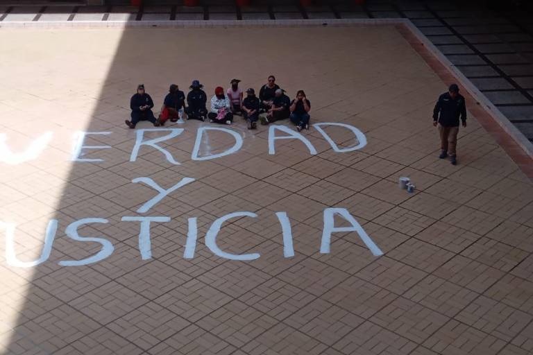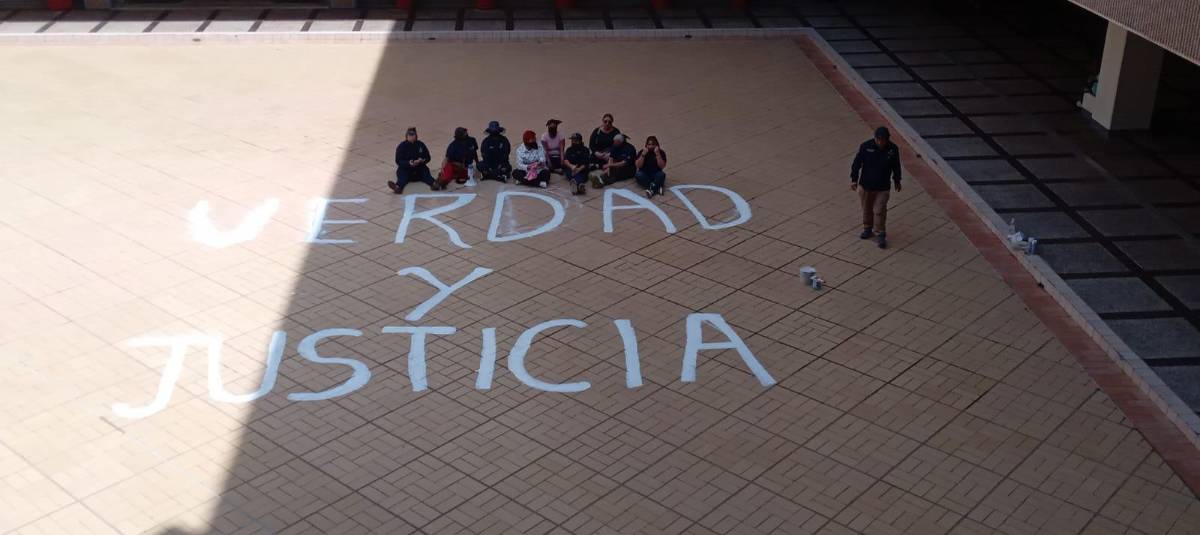Con pintas en el suelo del recinto público exigieron Verdad y Justicia.
