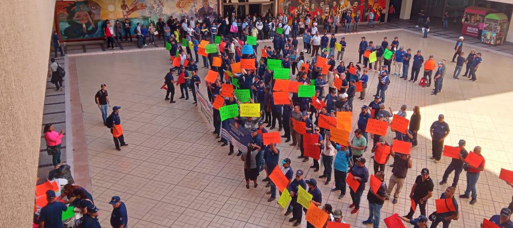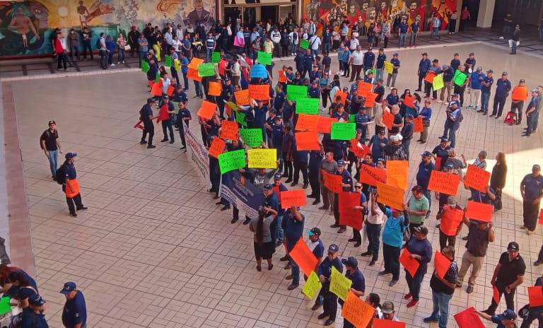 El grupo de al menos 100 elementos retirados, liderados por su asesora jurídica Yesenia Rojo Carrizoza, señalan que algunas pensiones de policías municipales retirados son de mil pesos, lo que piden la homologación de las pensiones en todo el estado.