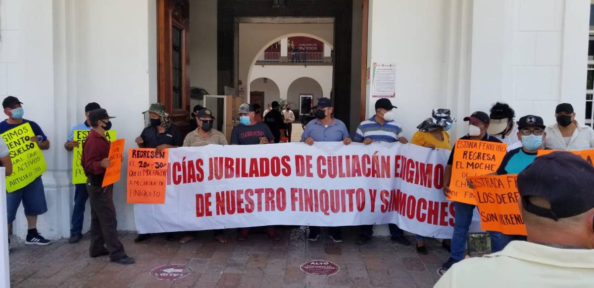 Un grupo de manifestantes conformado por policías municipales jubilados y viudas de policías tomaron por unas horas el Palacio Municipal de Culiacán impidiendo el paso a civiles.