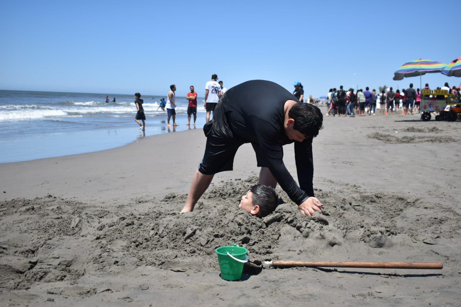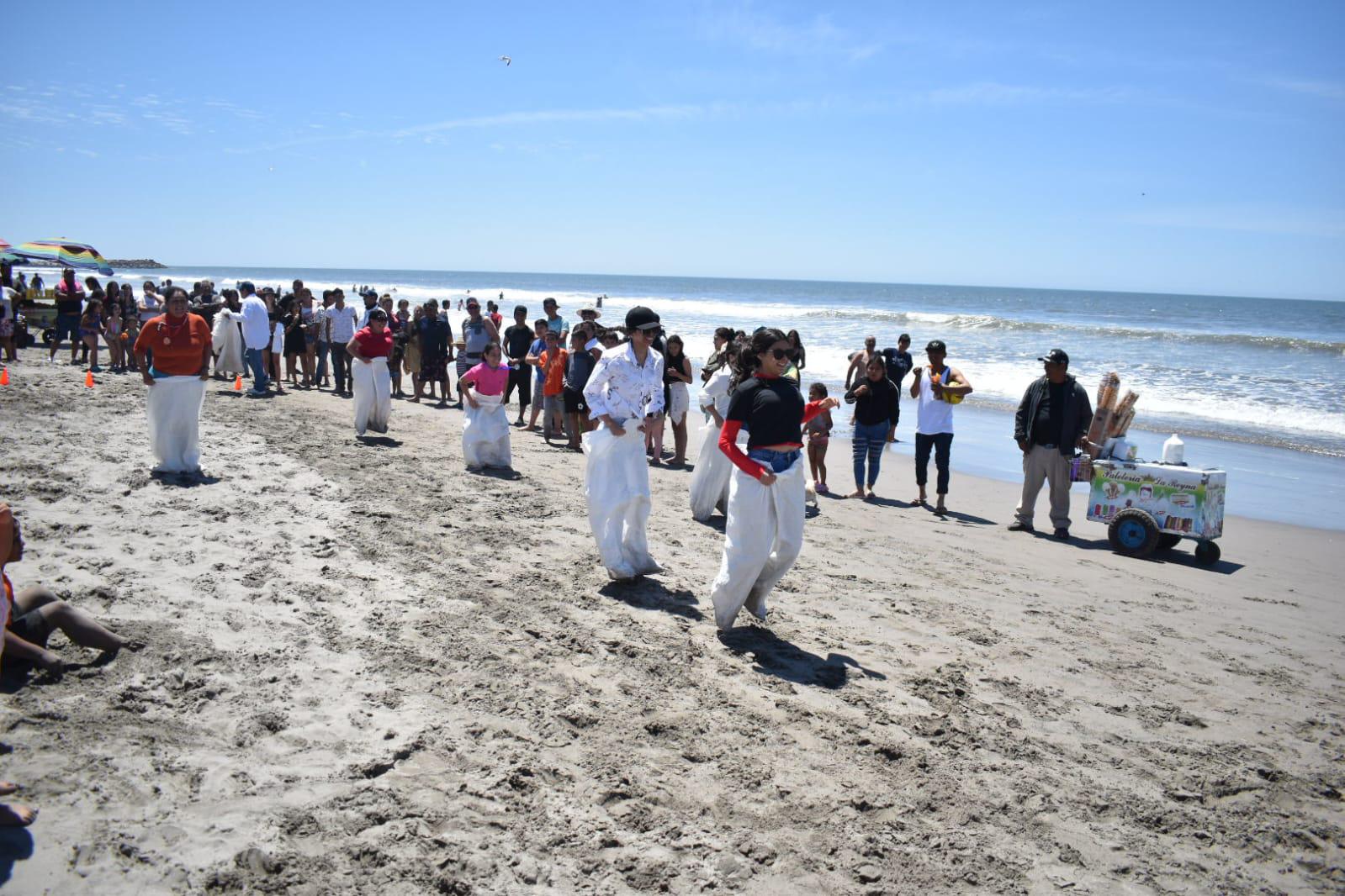 Desde papalotes, juegos de voleibol y hasta diversión con costales se puede vivir en el paseo por esta playa poseída por las multitudes que arribaron.