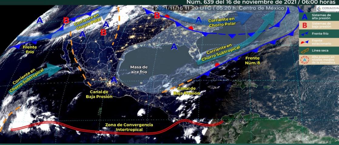 Las heladas prevalecerán en Sonora, Chihuahua, Nuevo León, Durango, Zacatecas, San Luis Potosí, Aguascalientes, Guanajuato, Jalisco, Michocán, Hidalgo, Estado de México, Puebla y Tlaxcala.