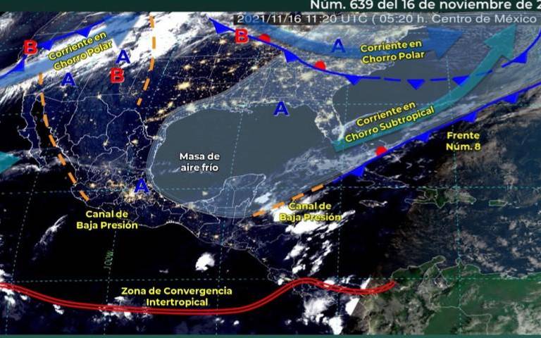 CULIACÁN._ Para este martes, la masa de aire que generó al frente número 8 modificará sus características térmicas, sin embargo, prevalecerá ambiente frío con heladas al amanecer en zonas del norte, noreste, centro y oriente de México.