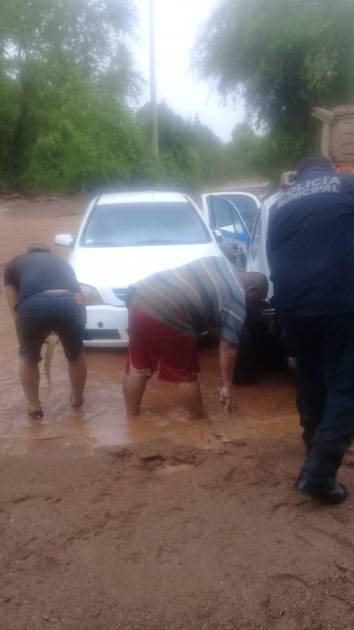 Uno de ellos al evitar que el arroyo arrastrara un automóvil en la Colonia La Campiña, el segundo, en el camino del poblado Ayuné, donde por medio de cuerdas, policías y ciudadanos apoyaron a una familia a sacar un vehículo atascado entre agua y lodo.