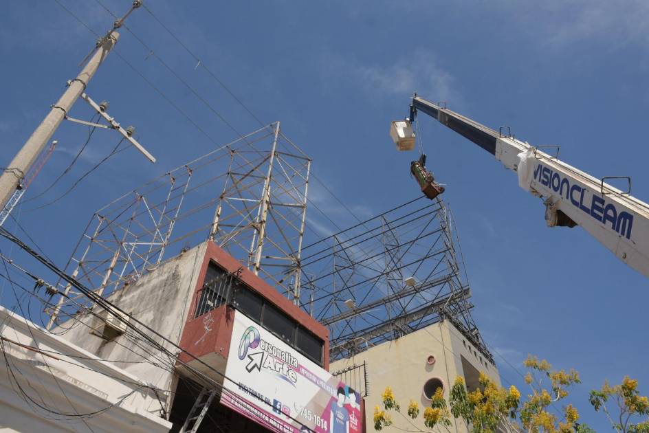 Por riesgo de desplome, retira Gobierno de Culiacán dos espectaculares del Centro