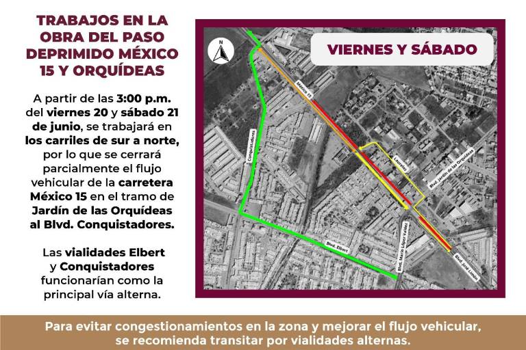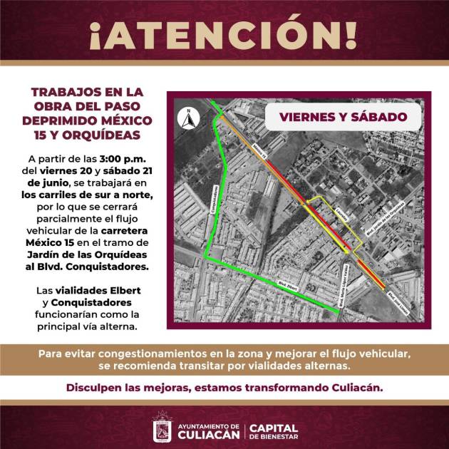 Por trabajos en paso deprimido, cerrarán la México 15 este viernes y sábado, en Culiacán