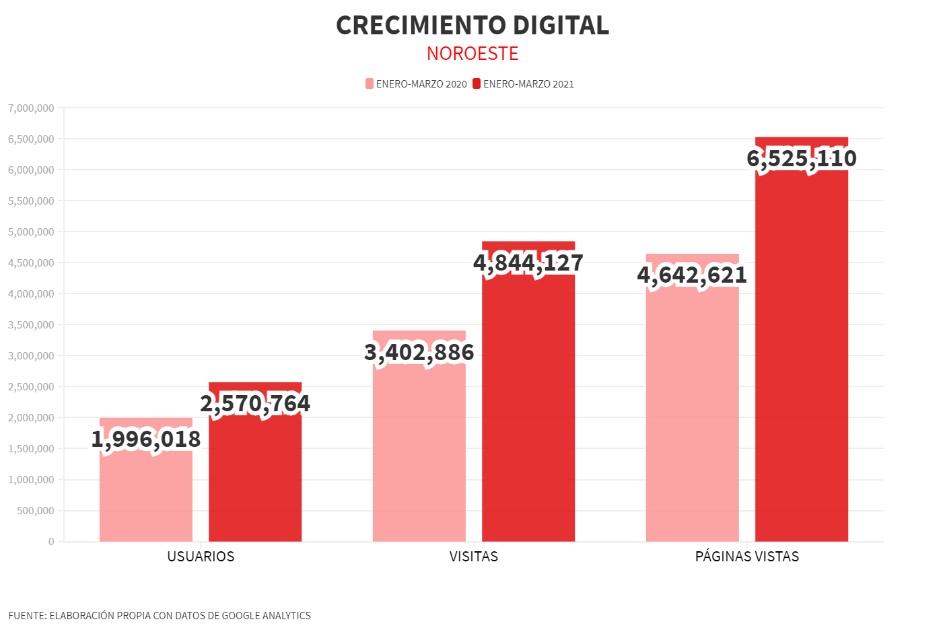 Portal de Noroeste crece 42% en primer trimestre de 2021