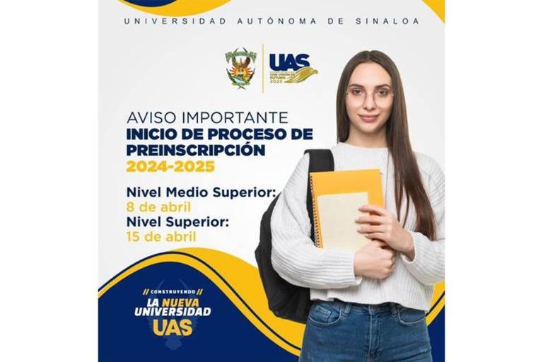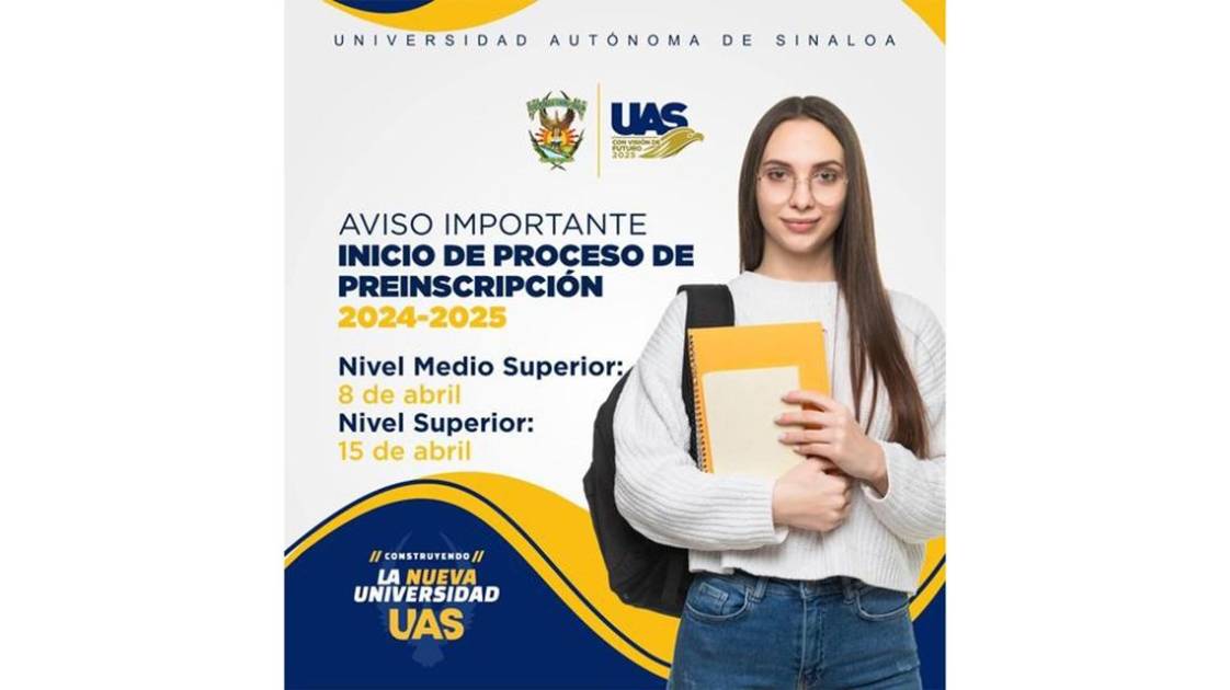 El inicio del proceso de inscripción para los niveles medio superior y nivel superior de la Universidad Autónoma de Sinaloa, serán entre el 8 y 15 de abril del 2024.