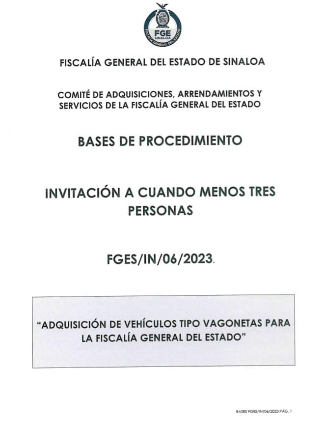 Le sigue el proceso de invitación a cuando menos tres personas FGES/IN/06/2023, relacionado con la adquisición de tres vagonetas para la Dirección General de Investigación Pericial.