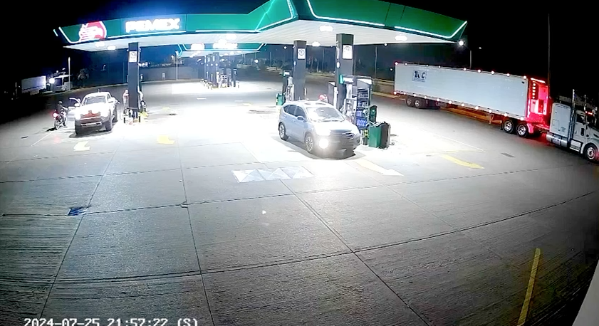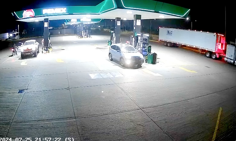 En el video de poco más de un minuto y 20 segundos se observa la llegada de una camioneta Raptor 2024 a una gasolinera en la zona norte de la ciudad de Culiacán, y mientras cargaba gasolina dos sujetos en una motocicleta llegan al espacio.