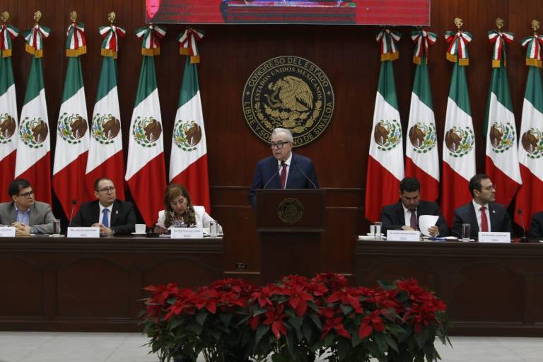 Durante su comparecencia en el Salón Constituyentes del Congreso del Estado, el Gobernador Rubén Rocha Moya presentó los resultados de su Cuarto Informe de Labores.
