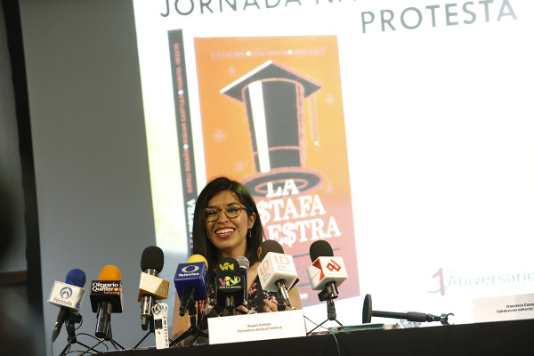 Como parte de las actividades programadas de la Jornada Nacional de Protesta por el primer aniversario luctuoso de Javier Valdez, la periodista Nayeli Roldán, de Animal Político, presentó en la Sala Audiovisual de la Torre Académica de la UAS el libro "La estafa maestra, graduados en desaparecer dinero público".