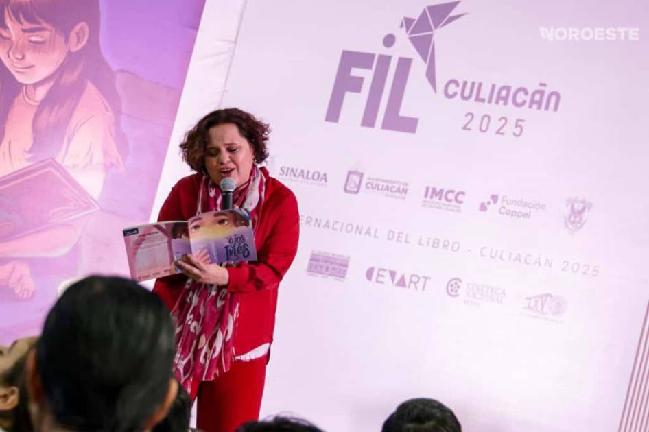 Con estos detalles, y ante un público mayormente infantil, la escritora culiacanense Georgina Martínez presentó este martes 11 de noviembre su libro “En los ojos de Inés”, en el marco de la tercera edición de la Feria Internacional del Libro Culiacán 2025.