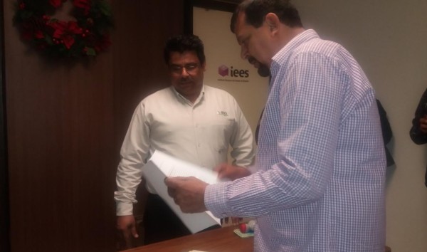 Los papeles los recibió José Guadalupe Güicho Rojas, coordinador de Prerrogativas de Partidos Políticos del IEES.