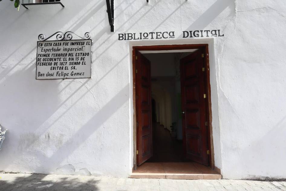 Afuera de la Biblioteca Digital, lugareños y visitantes pueden encontrar una placa con la leyenda: “En esta casa fue impreso el Espectador Imparcial, primer periódico del Estado de Occidente, el día 15 de febrero de 1827, siendo el editor el Sr. Don José Felipe Gómez”.