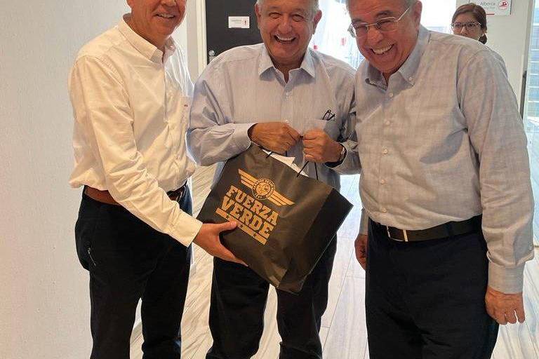 En la imagen también se observa al Alcalde de Ahome, Gerardo Vargas Landeros, quien recibió al Presidente desde el sábado durante su visita a la ciudad de Los Mochis.