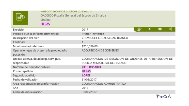 “En lo que se refiere a la presunta participación de un elemento de Policía de Investigación como parte de la guardia personal del presunto líder delincuencial, se informa que sí existe un agente activo de investigación con el nombre señalado de Rosario Heras, adscrito a órdenes de aprehensión, quien contaba con su periodo vacacional del 15 al 30 de julio de 2024”, reporta la institución.