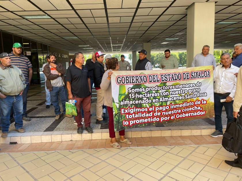 Productores de maíz en el norte de Sinaloa protestaron en Palacio de Gobierno del Estado, en Culiacán, debido a la falta de pago de sus cosechas del año pasado.