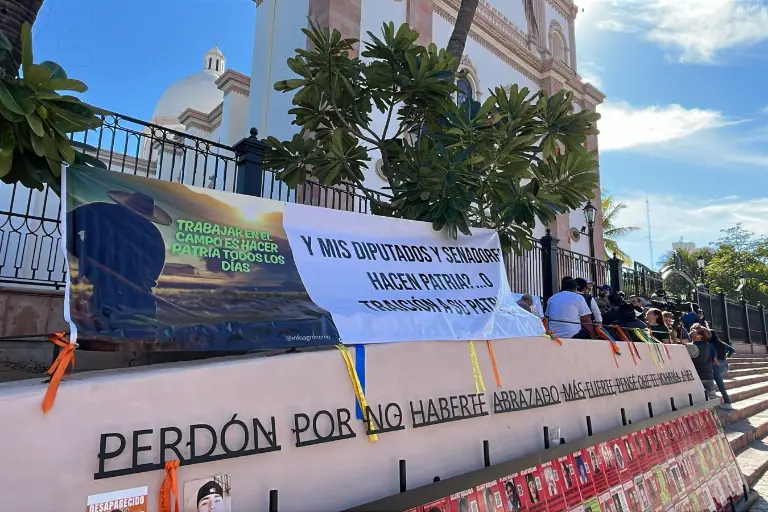 Productores agrícolas del centro de Sinaloa se manifestaron frente a la Catedral de Culiacán, sobre la avenida Álvaro Obregón, para exigir precios justos al maíz y denunciar lo que calificaron como un boicot por parte de la Secretaría de Agricultura federal en las mesas de negociación.