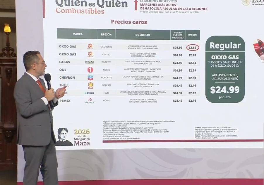 La información fue presentada durante la conferencia matutina del Gobierno federal, donde el titular del organismo, Iván Escalante, explicó que los precios finales al consumidor pueden variar no solo por la marca, sino por los márgenes de ganancia que cada establecimiento aplica.