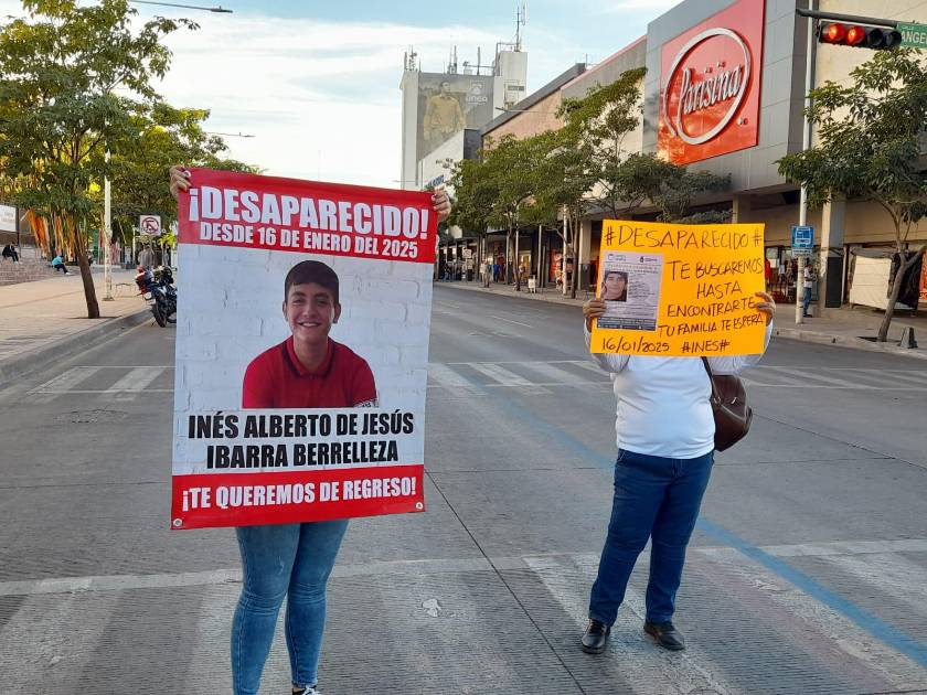 CULIACÁN._ Con pancartas, familia y amigos se manifestaron este jueves por la desaparición de Inés Alberto de Jesús Ibarra Barrelleza en Culiacán, el pasado 16 de enero.