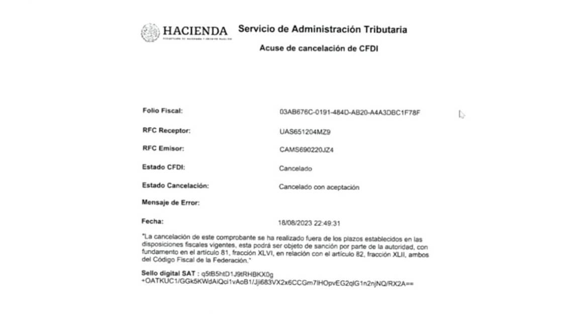 La cancelación fue presentada por la defensa en mil 599 fojas para evitar la vinculación a proceso de los acusados y las facturas fueron canceladas los días 17 y 18 de agosto de 2023, aún cuando ya estaban fuera del plazo regular para hacerlo según las disposiciones fiscales vigentes. Entre ellas destacan compras por 60 pesos el kilo de tortilla.