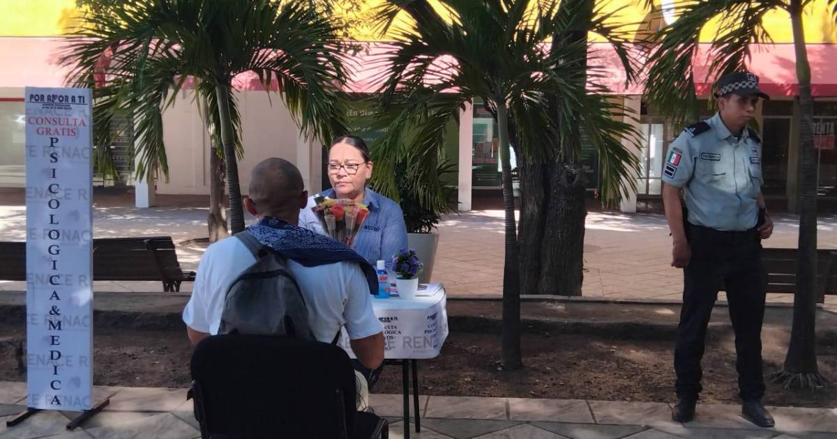 Todos los sábados de 9:00 a las 13:00 horas, cinco psicólogas instalan su espacio, compuesto por una pequeña mesa y dos sillas, a un costado del kiosco de La Catedral.