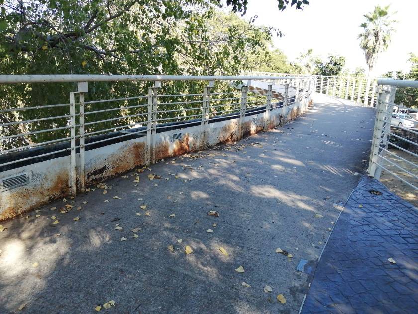 Puente Bimodal Parque Constitución que conecta al Zoológico de Culiacán con el Parque Las Riberas, se encuentra en malas condiciones, pues luce vandalizado, deteriorado y con acumulación de basura.