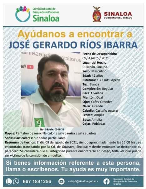 “Ayer se presentó ya la denuncia formal y hoy ya estamos solicitando que en realidad se hagan todos los esfuerzos para encontrar con bien a nuestro compañero Gerardo Ríos”, concluyó.