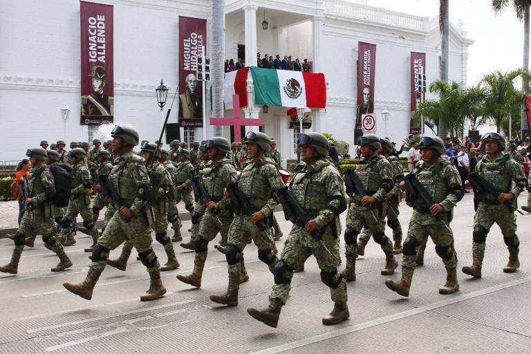 CULIACÁN._ Resonaron las trompetas y arrancó el desfile militar de este sábado en Culiacán por el 213 aniversario del inicio del movimiento por la Independencia de México.