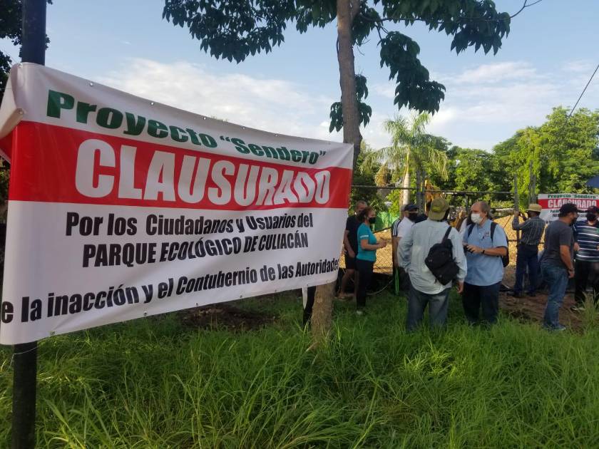 A un costado del bulevar Universitarios continuo al Centro de Ciencias, un pequeño grupo de manifestantes realizó un plantón en contra de la construcción del proyecto Sendero.