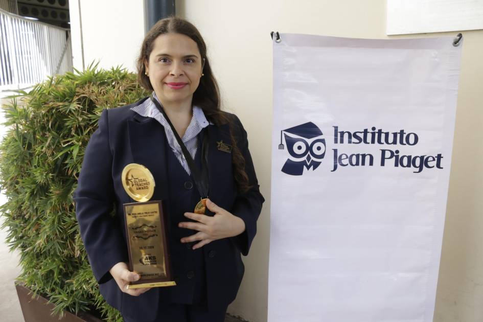 Por haber realizado una contribución importante en su profesión como docente, Rosa Amelia Trejo Castro, maestra del Instituto Bilingüe Jean Piaget, recibió el reconocimiento internacional Global Teacher Award, por parte de AKS Education Awards con sede en la India.