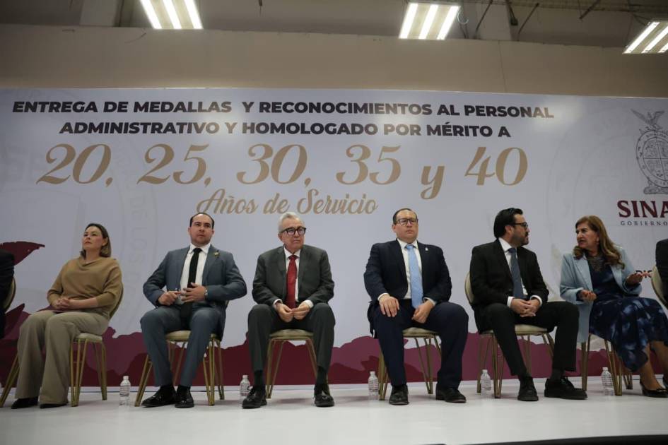 Un total de 267 trabajadoras y trabajadores pertenecientes a los tres poderes del Estado, organismos descentralizados y entidades de la administración pública recibieron este 3 de diciembre medallas y reconocimientos por su trayectoria de más de 25 años de servicio, en un acto encabezado por el Gobernador Rubén Rocha Moya.