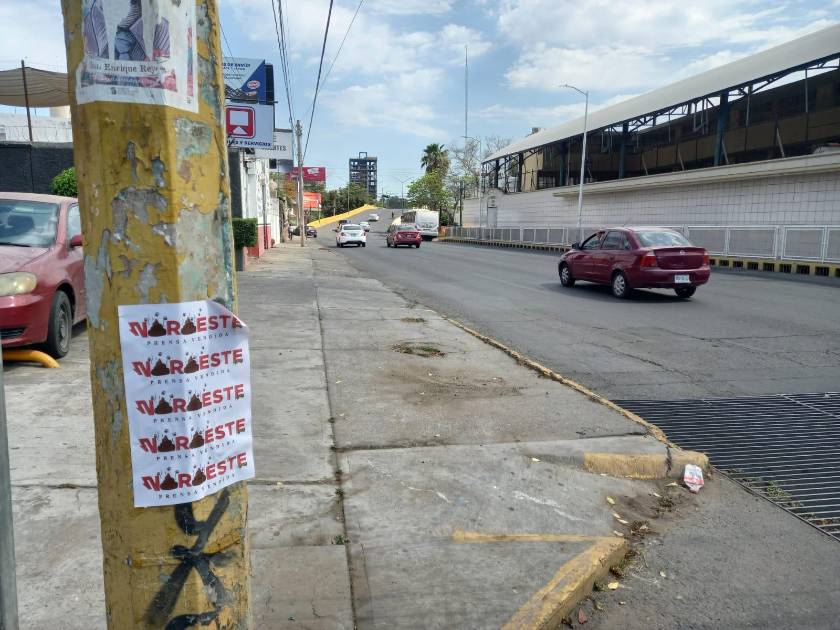 A un par de días de que se cierren las elecciones de cara a la jornada del 6 de junio, personas desconocidas han vuelto a pegar a calcas en las inmediaciones del periódico Noroeste, en el centro de Culiacán.