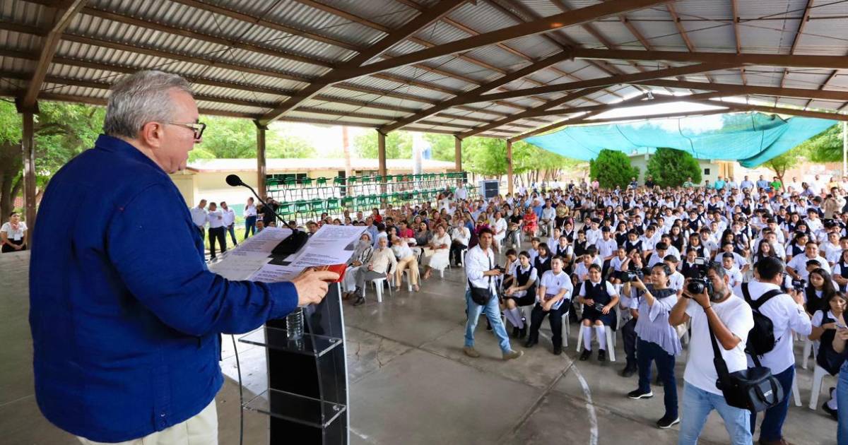 El Gobernador Rocha Moya aprovechó la inauguración del ciclo escolar para recordar a los estudiantes la beca que les otorga el Gobierno Federal para cursar sus estudios.