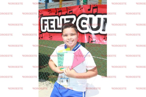El cumpleaños del ex concursante de La Voz Kids 2017 es el 10 de mayo, pero sus padres, Alex Ojeda y Sugey Lizárraga, anticiparon la celebración a fin de que el niño pasara un buen momento con sus compañeros del Instituto Pedagógico Hispanoamericano, quienes lo colmaron de abrazos y felicitaciones, además de tarjetas hechas por ellos mismos para expresarle el cariño que le tienen.