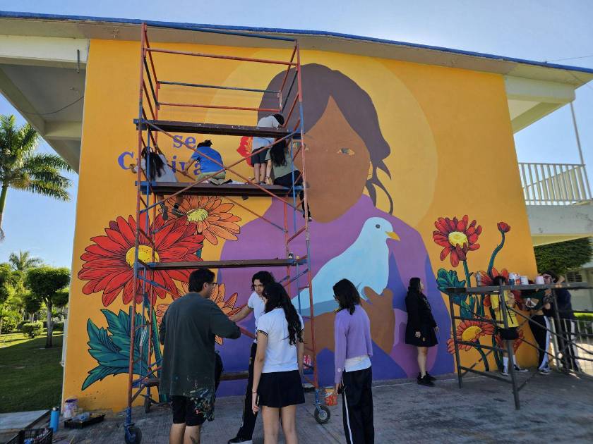Renueva mural la preparatoria Emiliano Zapata de la UAS