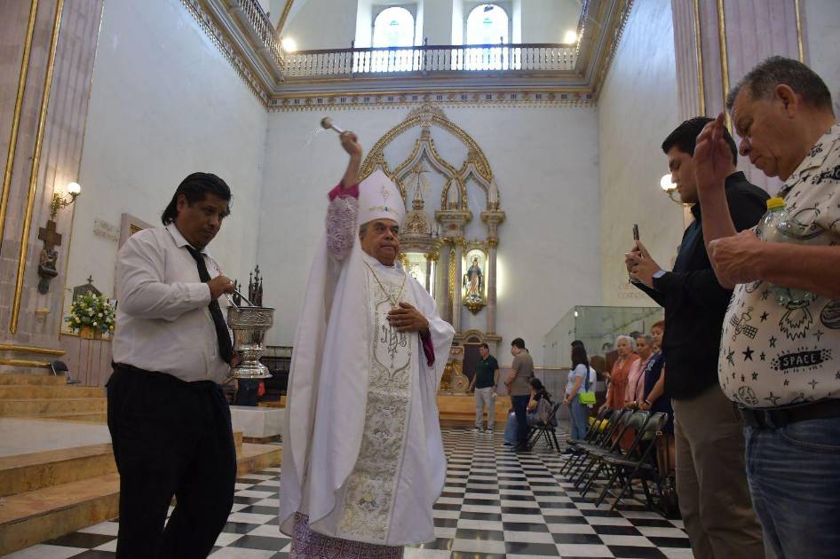 “Dios y Padre nuestro, que en el domingo, día memorial de la resurrección, reúnes a tu Iglesia, bendice a este pueblo y, por medio de esta agua, reaviva en todos nosotros el recuerdo y la gracia del bautismo, nuestra primera Pascua. Por Jesucristo nuestro Señor. Amén”, dijo.