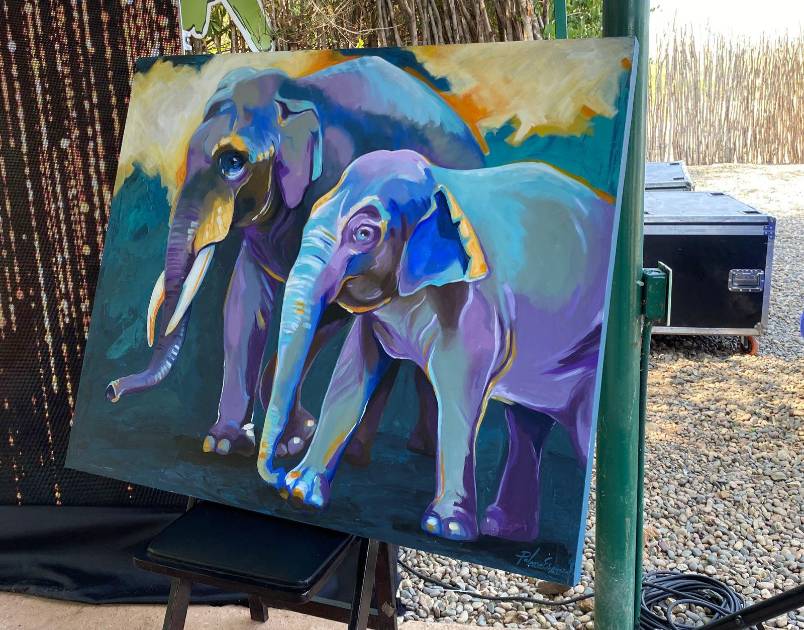 La artista mexicana, Paloma Espinoza donó un cuadro de la imagen de los elefantes caminando a la par, el cual se rifará entre los interesados para solventar los gastos de la feliz pareja, destacó Amado Zazueta, director de la Unidad de Rescate.