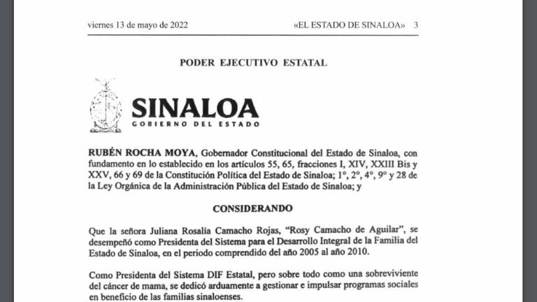 “Con profunda satisfacción quiero expresar: gracias señora Rosy, donde quiera que se encuentre, por su gran obra y su gran legado, que el ejemplo de entrega incondicional de Rosy Camacho en favor de las víctimas de una de las enfermedades mayormente mortales perdure y se transmita a presentes y futuras generaciones de sinaloenses”, concluyó.