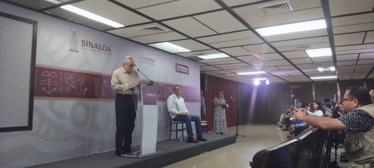 La que sí se realizó de manera normal fue la conferencia de prensa de la Vocería del Gobierno del Estado, que encabeza el Secretario General de Gobierno, Feliciano Castro Meléndrez, misma qué momentáneamente se pausó por la llegada de Rocha Moya, quien anunció que acudiría para emitir un posicionamiento, pero no respondería preguntas.