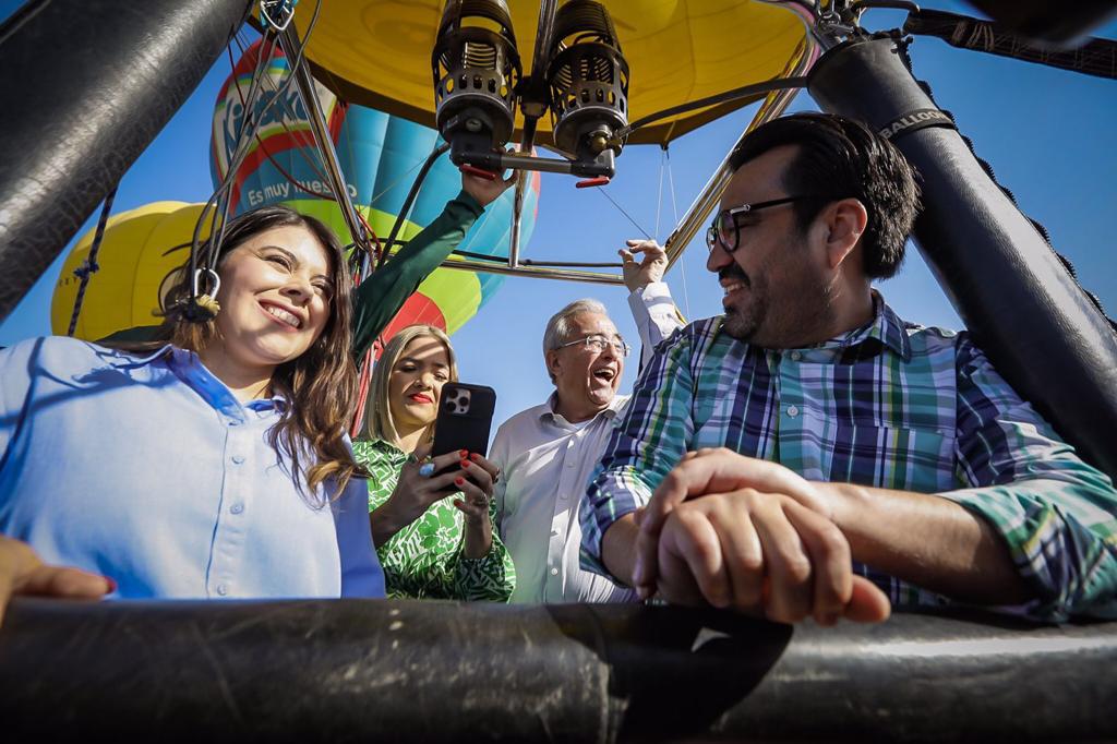 Y ambos aprovecharon para subir a uno de los globos aerostáticos juntos al Alcalde de Culiacán, Juan de Dios Gámez Mendívil, y su esposa Irma Nidya Gasca Aldama.
