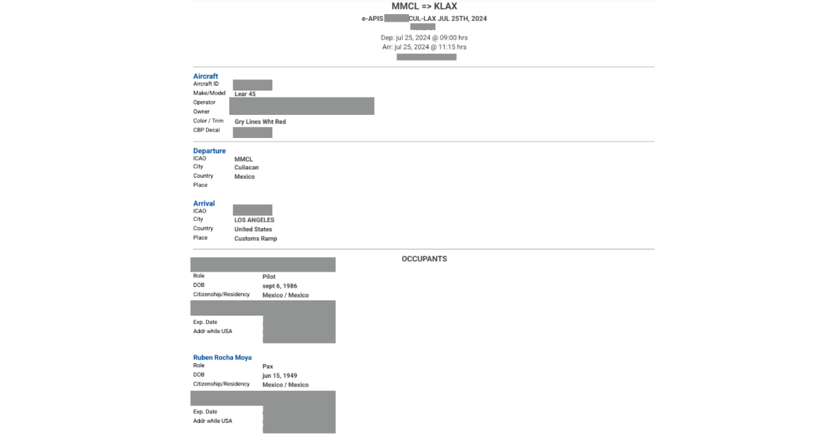 En los documentos de vuelo obtenidos por Noroeste se señala que Rocha Moya y su familia volaron en una aeronave privada rentada.