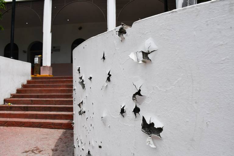 Además de las víctimas humanas, la agresión quedó plasmada en daños a la fachada del inmueble, así como al menos tres vehículos que estaban estacionados y recibieron impactos de bala.