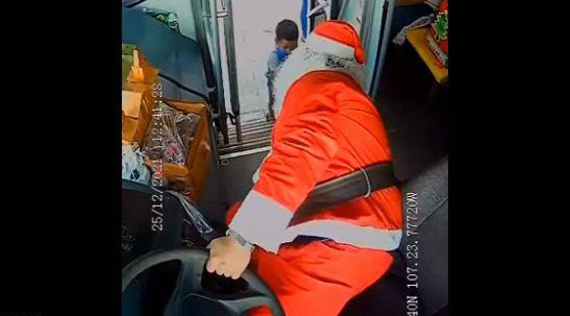 Santa Clos se pasea en un Cucas por Culiacán: conductor de camión urbano regaló dulces a niños en Navidad