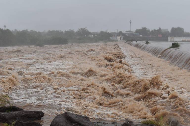 Agregó que la cantidad de agua que fluye por la presa ha disminuido en comparación con la registrada el sábado.