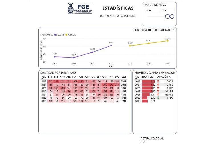 Hasta el momento, las autoridades mantienen la actualización de estas cifras, reflejando un reto constante para las políticas de seguridad pública destinadas a proteger el patrimonio de los comerciantes sinaloenses.