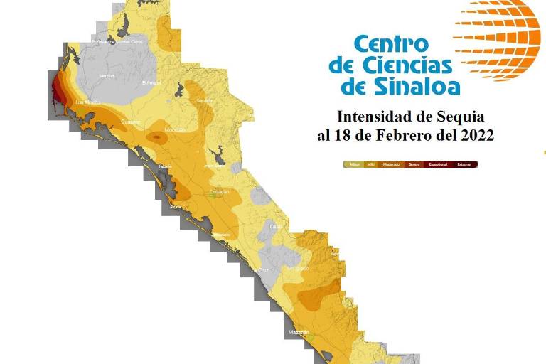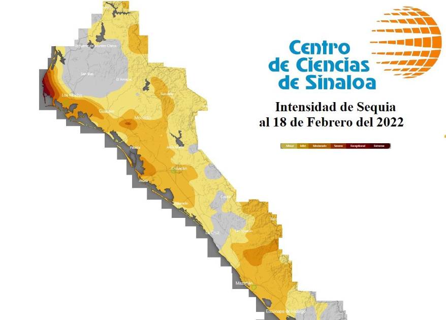 El doctor en Geofísica señaló en que actualmente ya existe una sequía extrema en la zona norte de Sinaloa, en municipios como Ahome, nivel moderado en Guasave, Mocorito y Concordia, nivel medio en Culiacán, Mazatlán y San Ignacio.